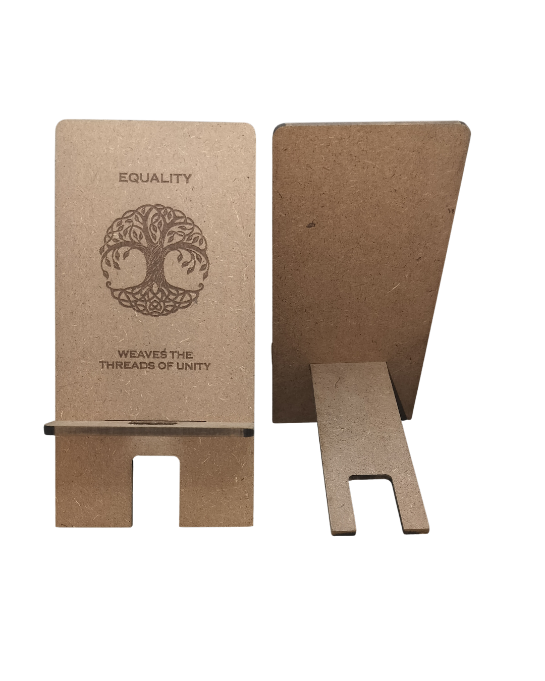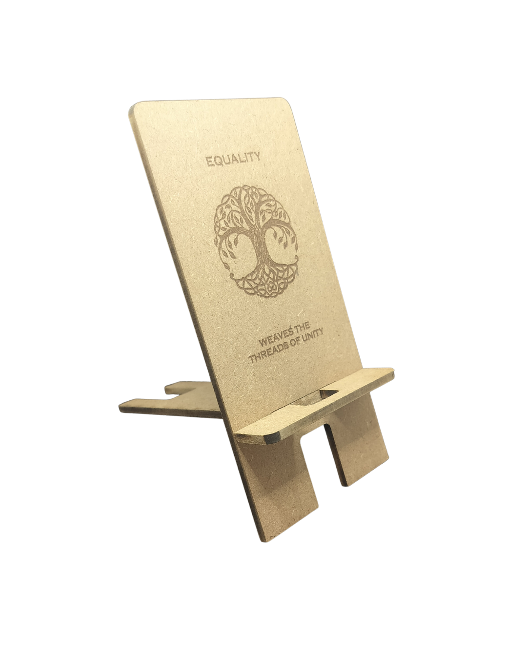 The Hello Wooden Mobile Stand blends wellness, aesthetics, and practical function into one purposeful design. Made from two interlocking wooden pieces, it assembles quickly into a sturdy, ergonomic stand for your smartphone—reducing eye strain, neck pain, and hand fatigue. Use it as a dock, mini-theater, video-call stand, or learning companion. Featuring Equality quote—champion fairness and inclusivity.