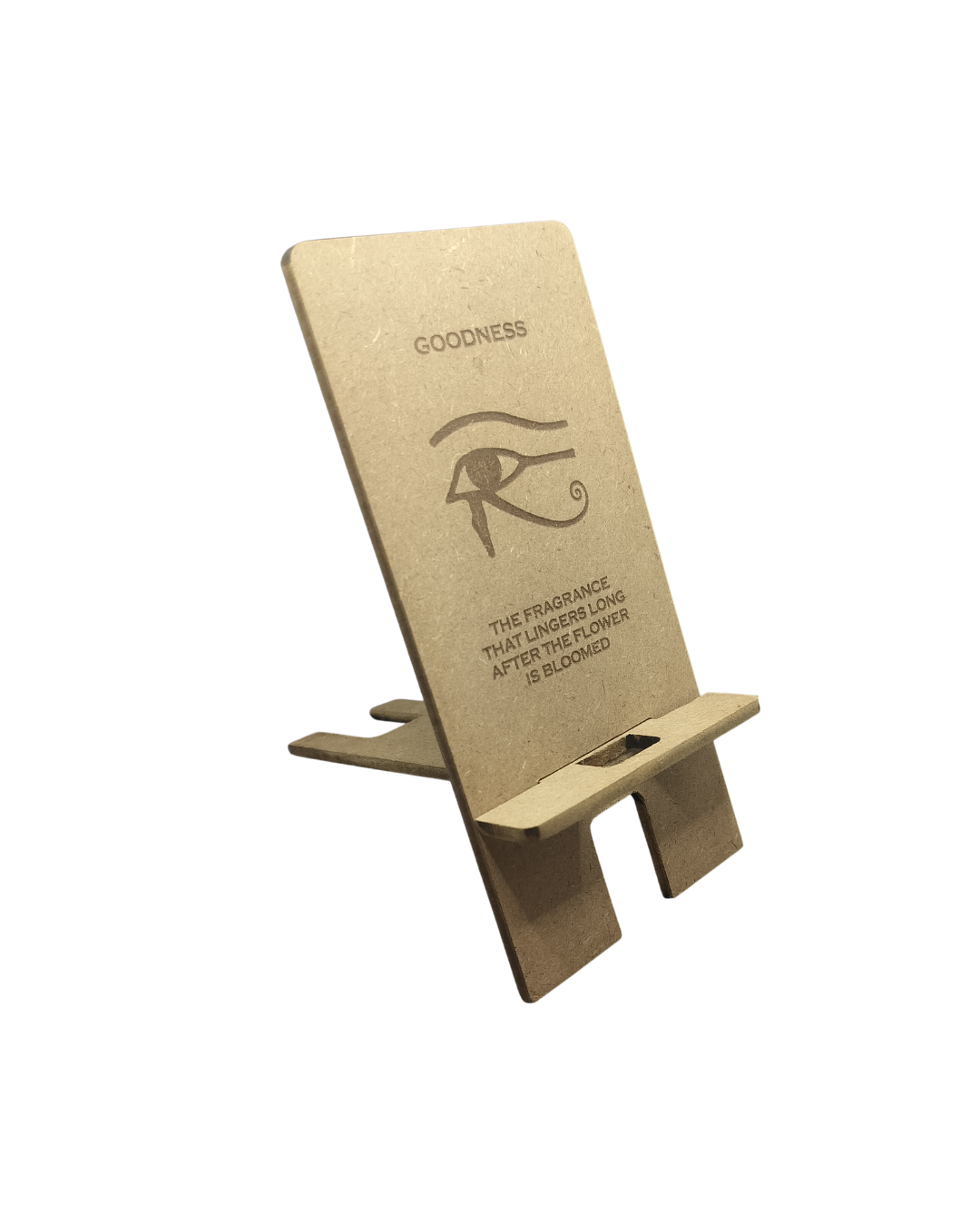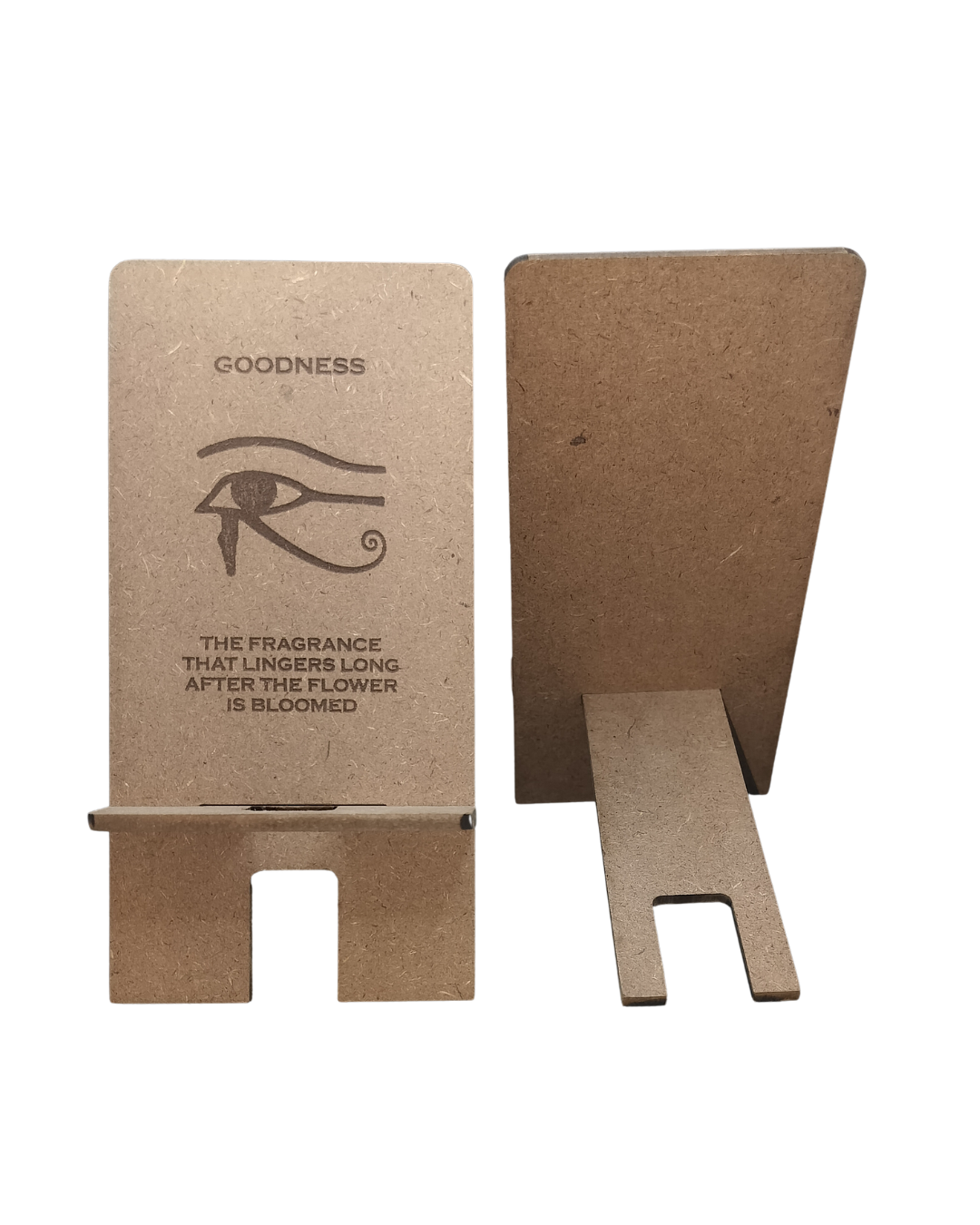 The Hello Wooden Mobile Stand blends wellness, aesthetics, and practical function into one purposeful design. Made from two interlocking wooden pieces, it assembles quickly into a sturdy, ergonomic stand for your smartphone—reducing eye strain, neck pain, and hand fatigue. Use it as a dock, mini-theater, video-call stand, or learning companion. Featuring Goodness quote—promote kindness and positivity.