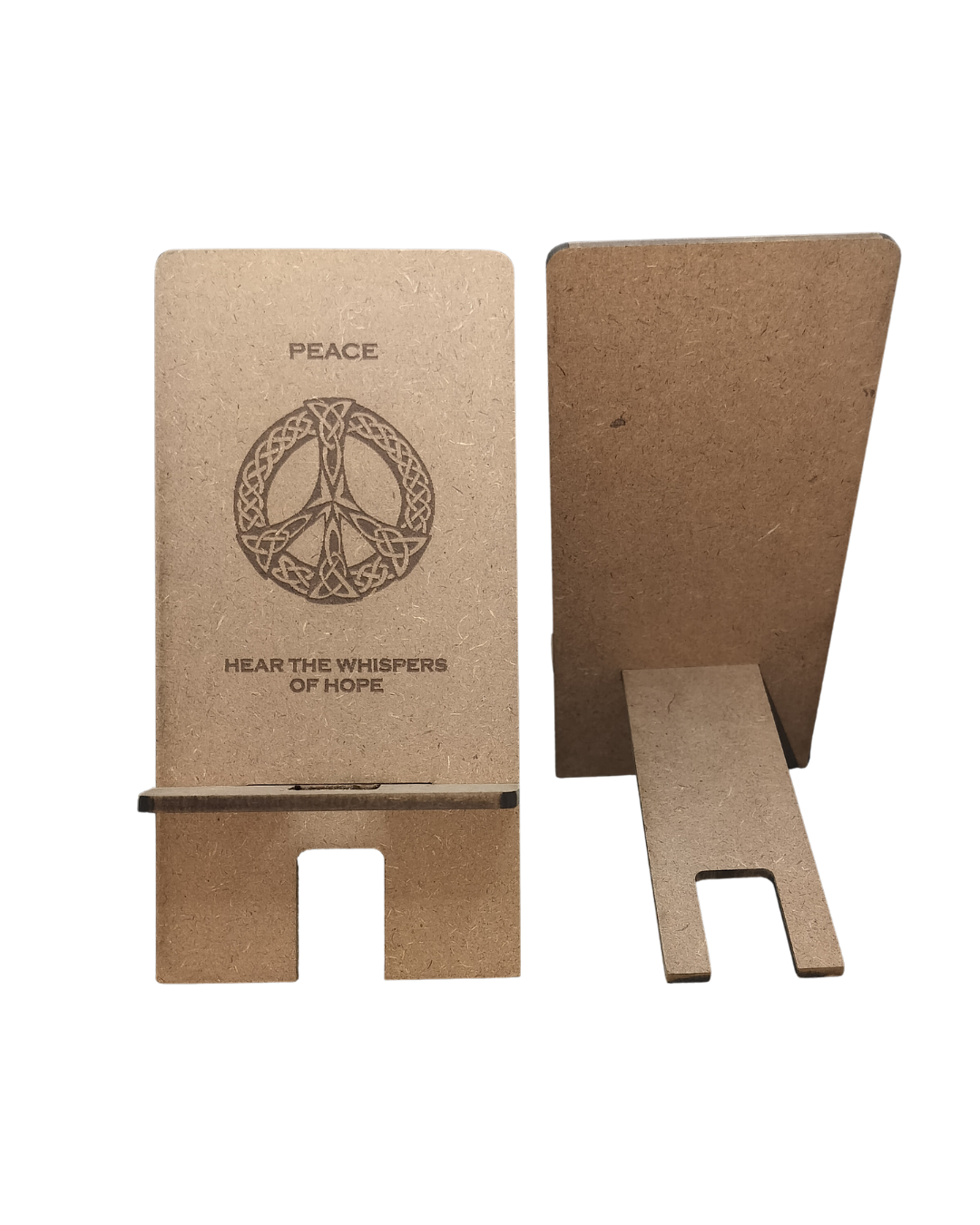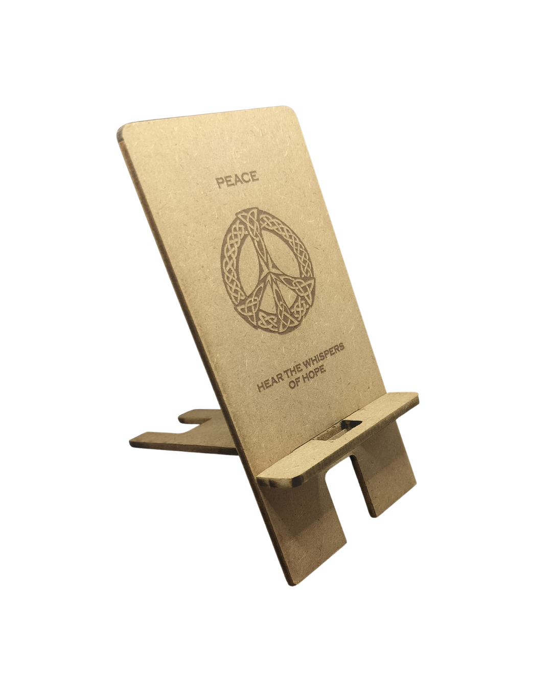 The Hello Wooden Mobile Stand blends wellness, aesthetics, and practical function into one purposeful design. Made from two interlocking wooden pieces, it assembles quickly into a sturdy, ergonomic stand for your smartphone—reducing eye strain, neck pain, and hand fatigue. Use it as a dock, mini-theater, video-call stand, or learning companion. Featuring Peace quote—invite calm and centered focus.