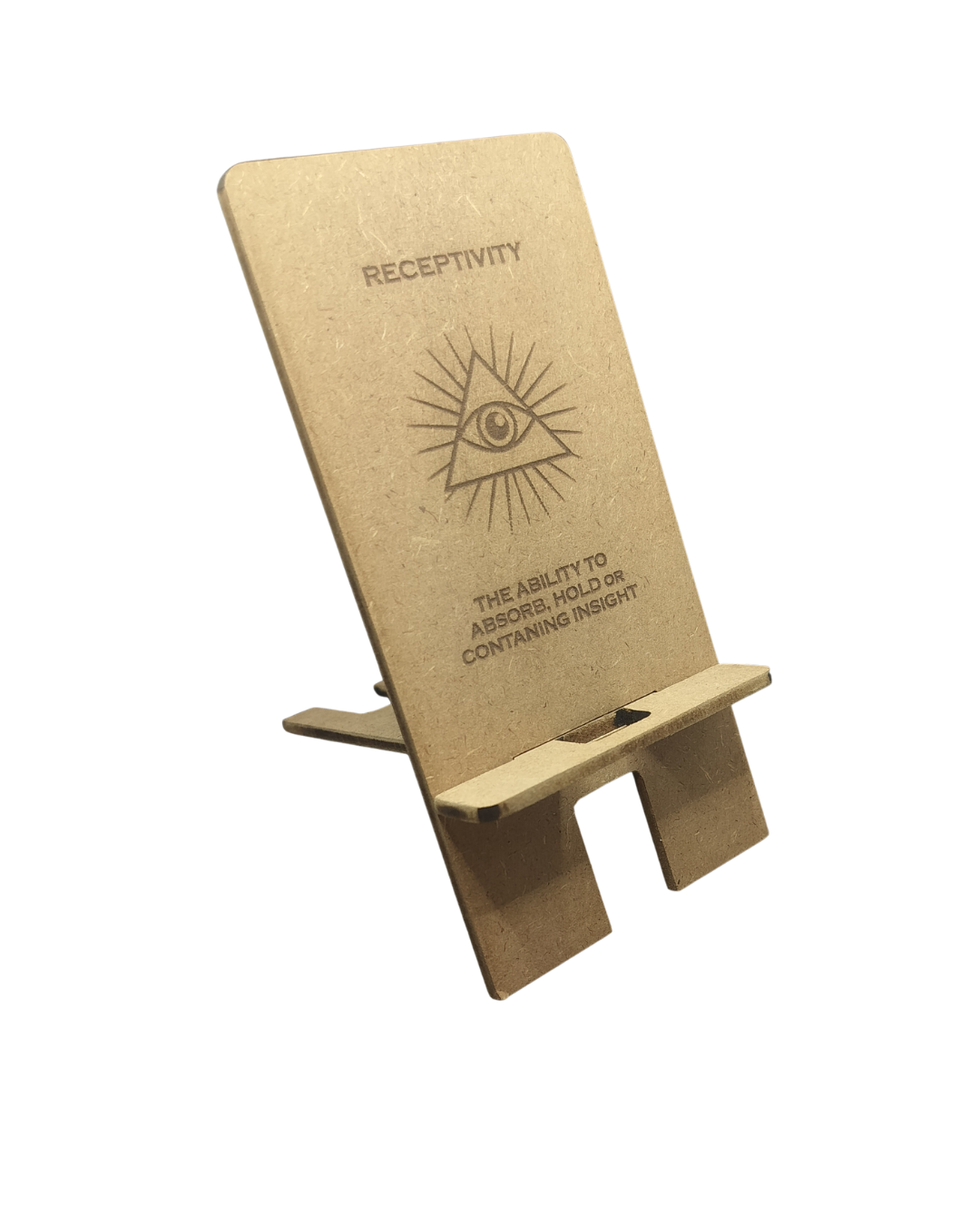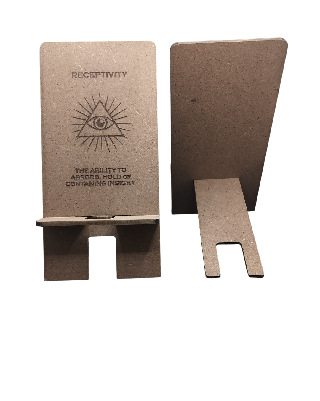 The Hello Wooden Mobile Stand blends wellness, aesthetics, and practical function into one purposeful design. Made from two interlocking wooden pieces, it assembles quickly into a sturdy, ergonomic stand for your smartphone—reducing eye strain, neck pain, and hand fatigue. Use it as a dock, mini-theater, video-call stand, or learning companion. Featuring Receptivity quote artwork—open to new insights and wisdom.