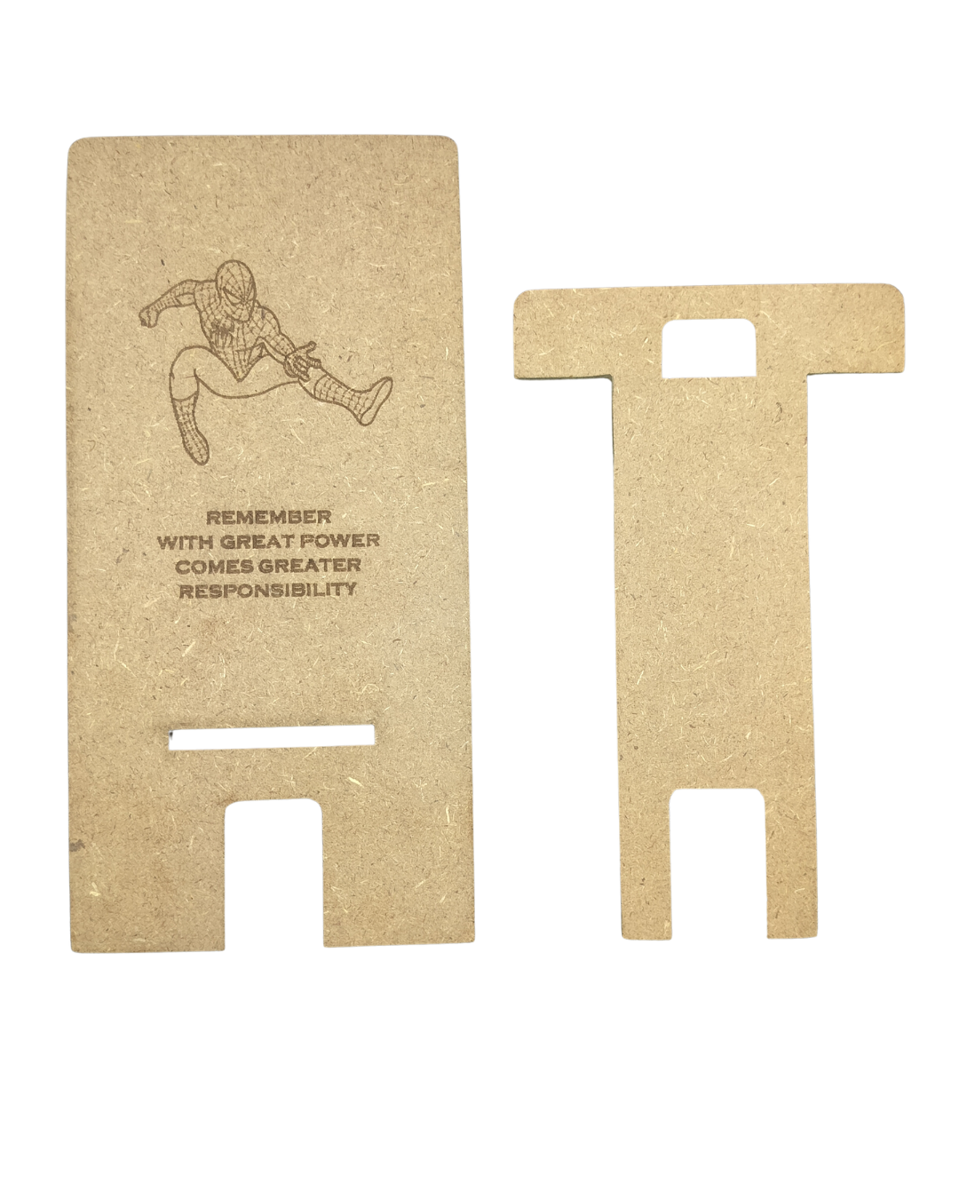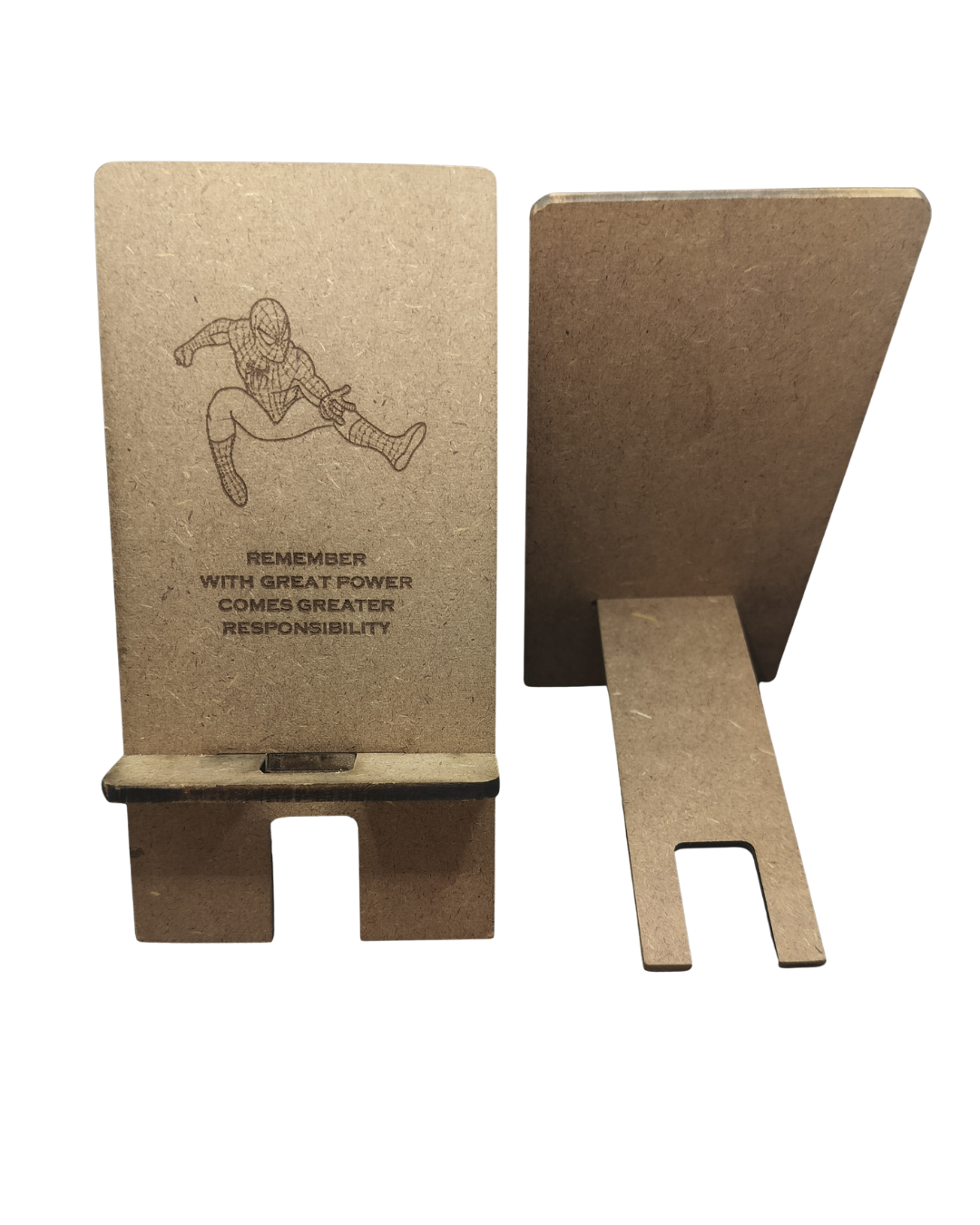 The Hello Wooden Mobile Stand blends wellness, aesthetics, and practical function into one purposeful design. Made from two interlocking wooden pieces, it assembles quickly into a sturdy, ergonomic stand for your smartphone—reducing eye strain, neck pain, and hand fatigue. Use it as a dock, mini-theater, video-call stand, or learning companion. Featuring Spiderman quote—with great power comes great responsibility.